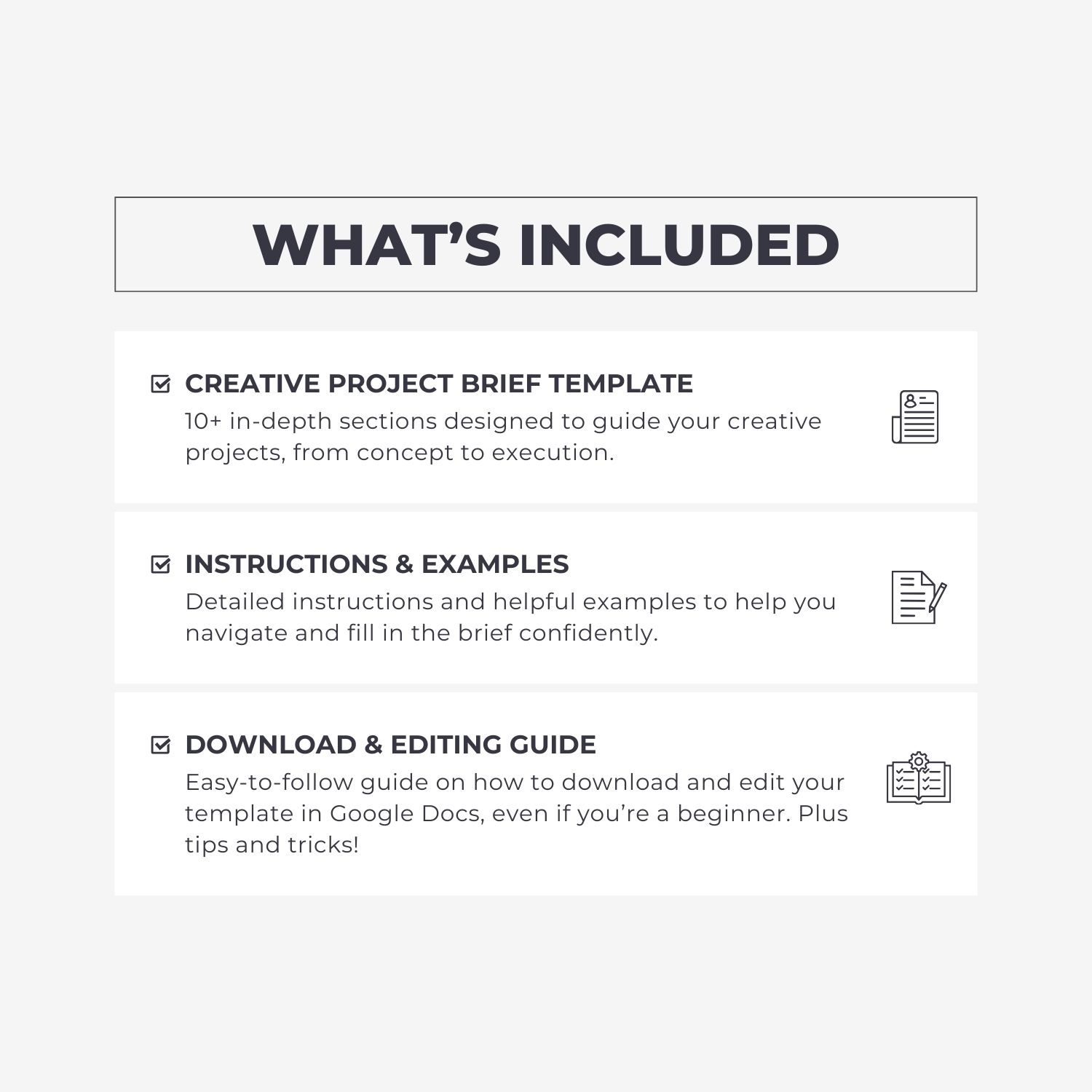 ✅ Detailed instructions and helpful examples to help you navigate and fill in the brief confidently and effectively.