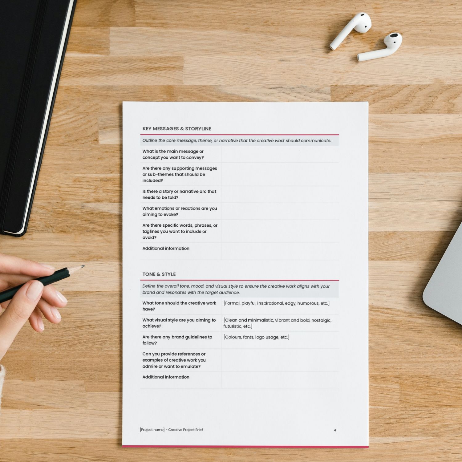 ✅ 10+ in-depth sections to guide you through the complete planning and execution of creative projects, from objectives and target audience to messaging and visual direction.